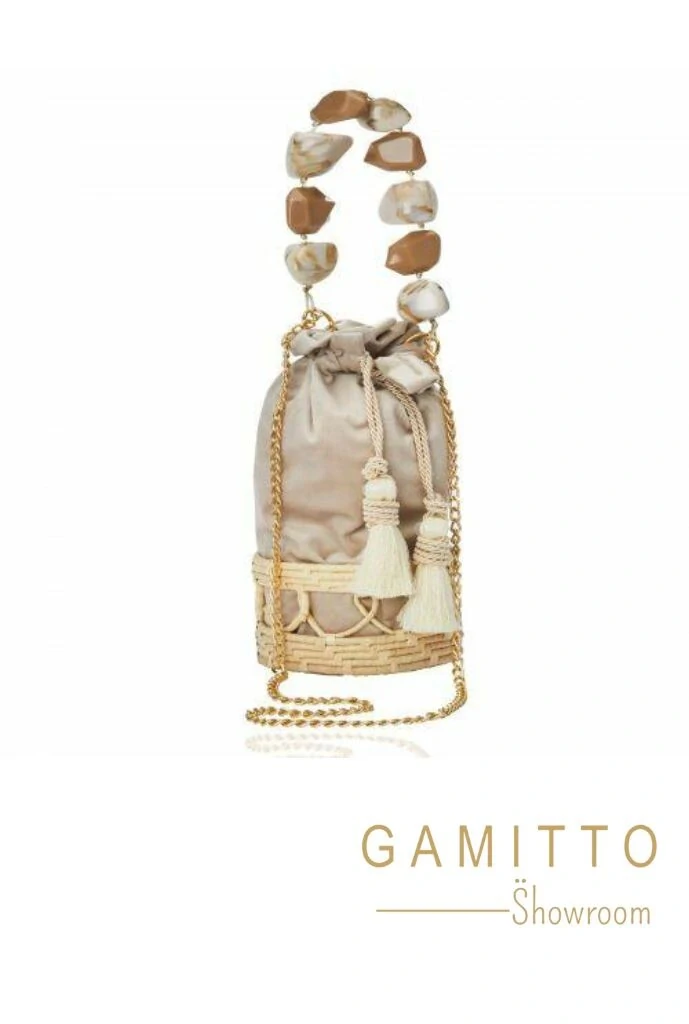 Materiais: Tecido suede com palha envernizada, pedras em resina e banho de Ouro 18K. Made in Italy.