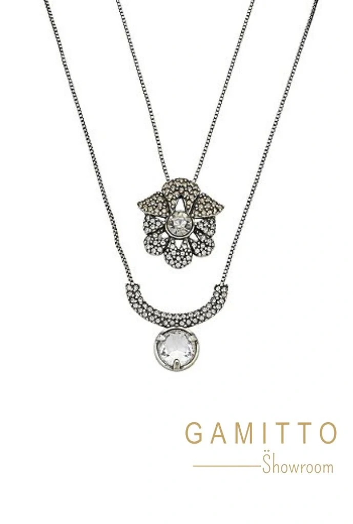 Colar Cristais em Banho Prata Vintage