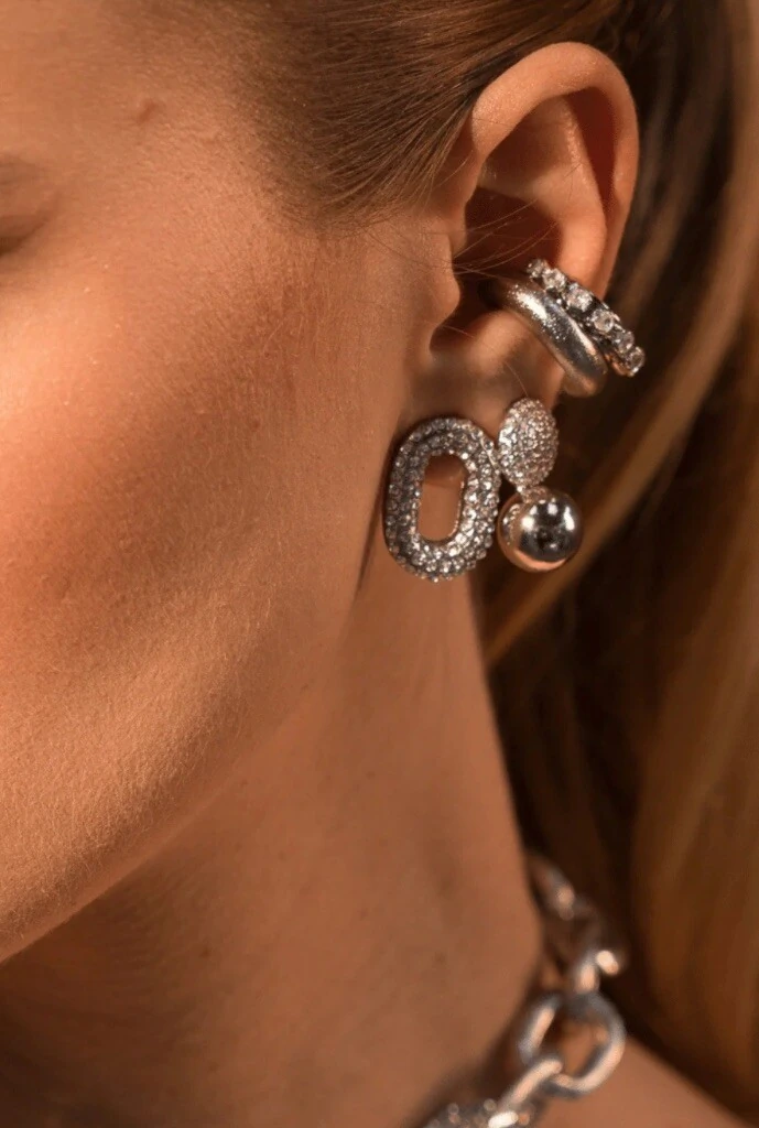 -60%Brinco Ear Cuff Strass em Banho Grafite