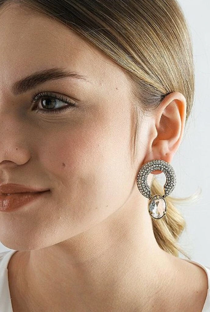 -50%Brinco Cristais em Banho Ouro Vintage