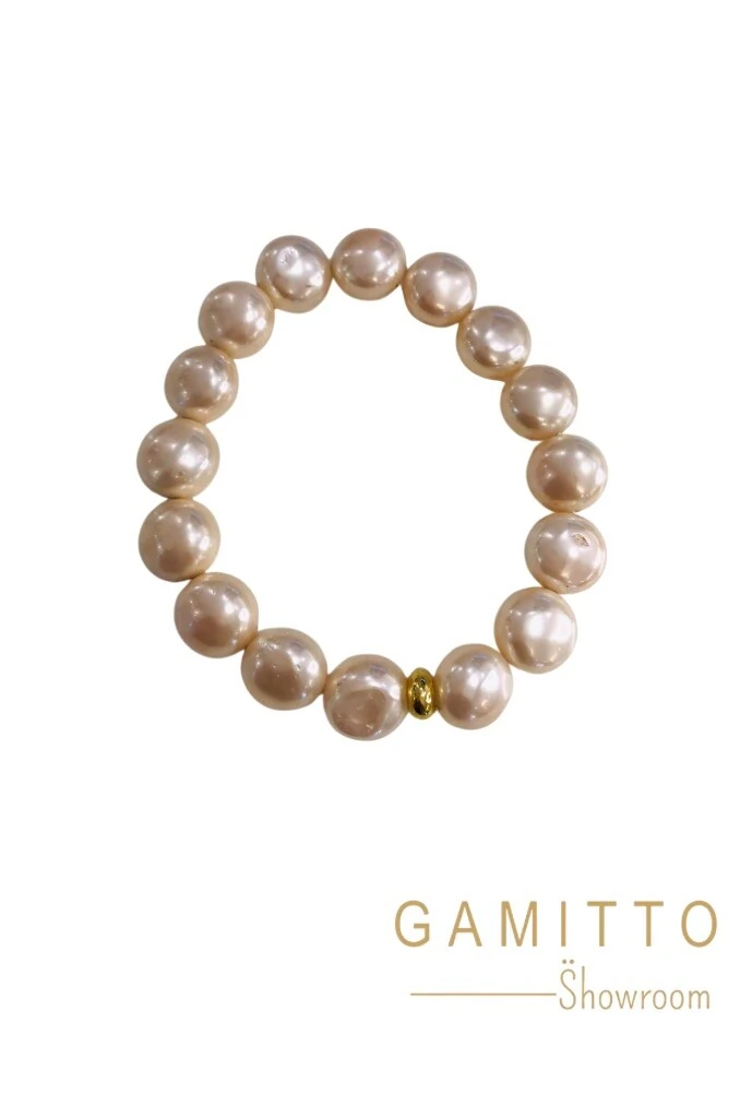 Pulseira Pérola Rosê em Banho Ouro